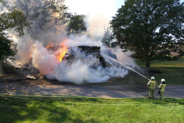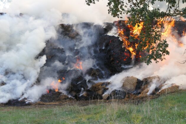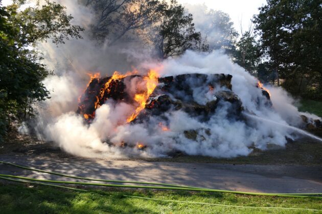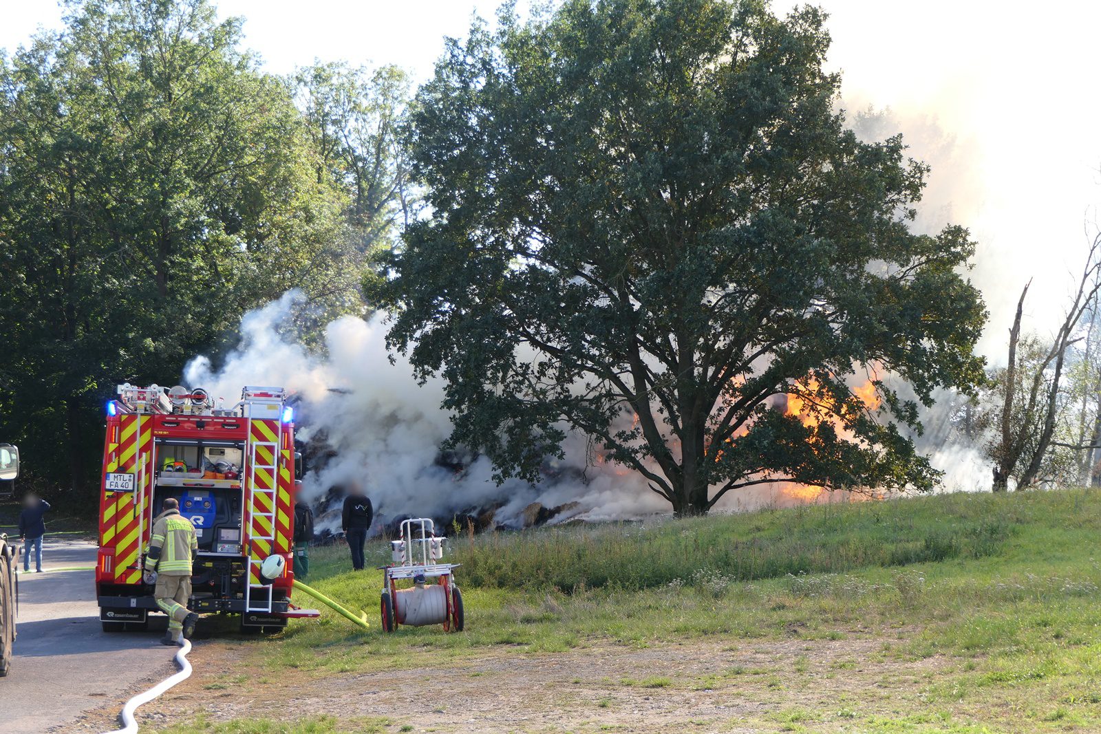 Polizeibericht: Gestern kam es in Bennewitz zu einem Brand eines Strohballenstapels, bestehend aus circa 700 Strohballen, verletzt wurde niemand.