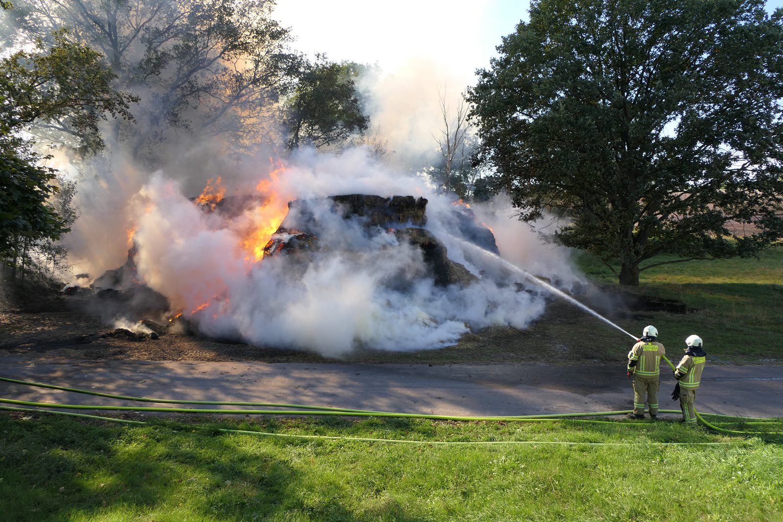 Trotz starker Winde gelang es den Einsatzkräften, das Feuer unter Kontrolle zu halten. Der Strohhaufen wurde kontrolliert abgebrannt, um ein Übergreifen der Flammen auf umliegende Flächen zu verhindern.