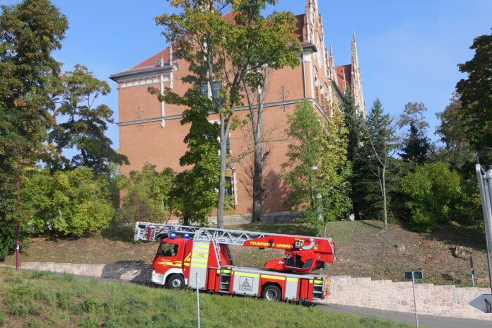 Grimma. Donnerstagvormittag rückten die Freiwilligen Feuerwehren aus Grimma und Hohnstädt zur Roten Schule in die Straße des Friedens aus.