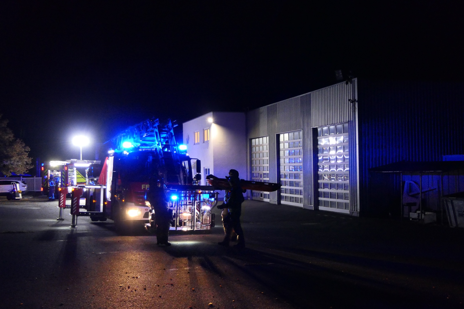 Auf dem Gelände der WIV-Werkstatt am Weinberg bot sich den anrückenden Einsatzkräften der Feuerwehren Grimma und Großbardau ein realistisches Bild: Dichte Rauchschwaden drangen aus dem Werkstatttor – die angenommene Brandmeldung bestätigte sich. Während einige Einsatzkräfte die Löschwasserversorgung über einen Hydranten sicherstellten, brachten andere die Drehleiter in Stellung und sorgten für eine großflächige Ausleuchtung des Geländes.