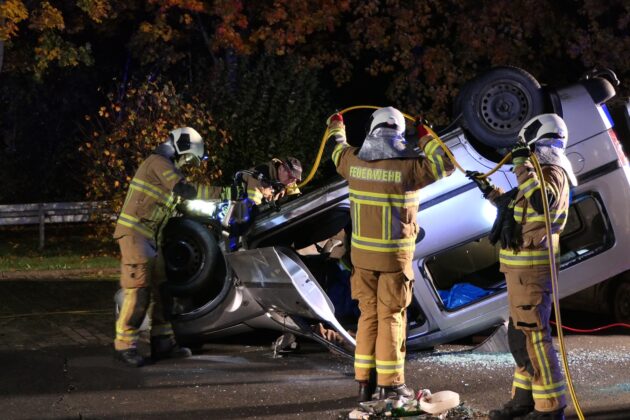 Während ein Trupp die vermisste Person im Gebäude suchte und ein weiterer Trupp über die Drehleiter eine Person vom Dach rettete, kümmerte sich eine weitere Mannschaft um die eingeklemmte Person im Unfallfahrzeug. Wie im echten Einsatzfall galt: Menschenrettung hat oberste Priorität – die Brandbekämpfung tritt zunächst in den Hintergrund.
