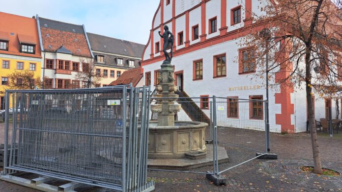 Grimma. Wer derzeit durch die Altstadt schlendert, wird an mehreren Stellen auf Bauzäune stoßen: Die Brunnen am Frauenkirchhof, in der Langen Straße sowie der Marktbrunnen sind momentan abgesperrt. Aber Warum?