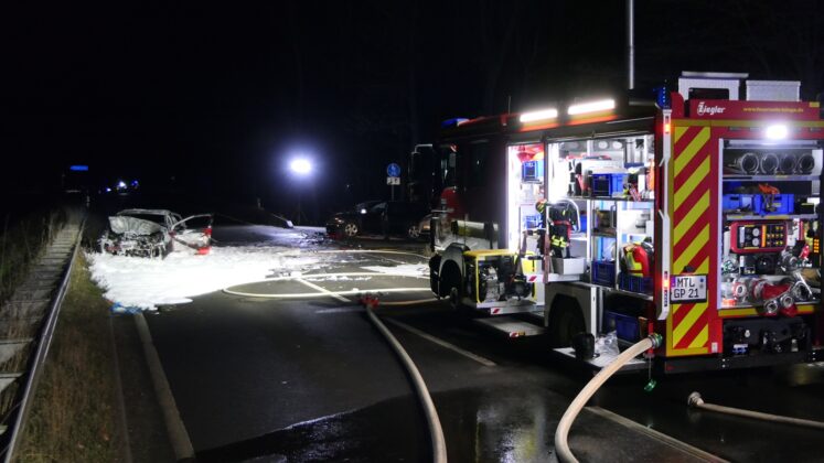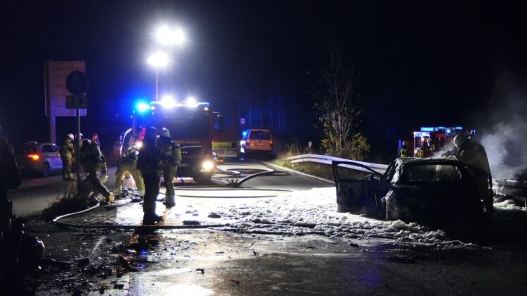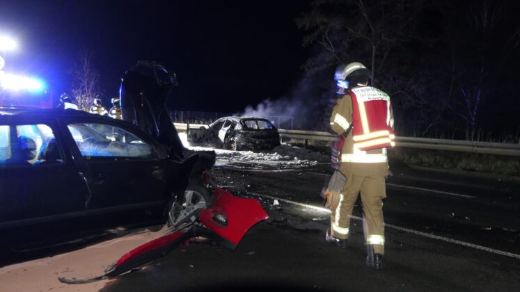 Drei Fahrzeuge kollidieren bei Klinga: Kreuzungscrash löst Fahrzeugbrand aus