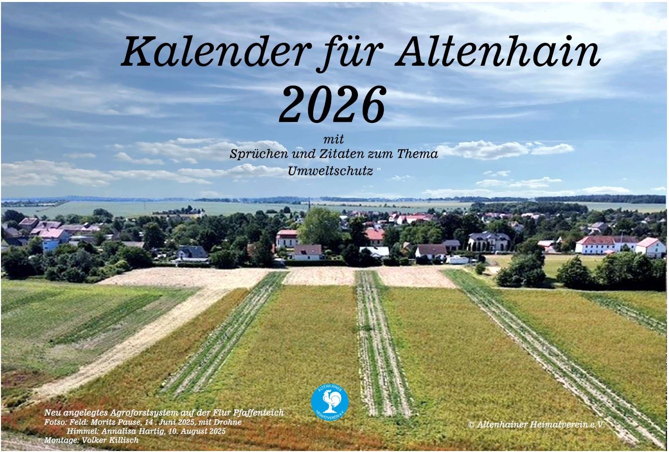 Aktuelle Veränderungen in der Altenhainer Landschaft fließen ebenfalls in den Kalender ein. So ziert das Deckblatt ein neu angelegtes Agroforstsystem auf der Flur „Pfaffenteich“ – ein sichtbares Zeichen dafür, wie auch lokale Landwirte auf die Herausforderungen des Klimawandels reagieren.
