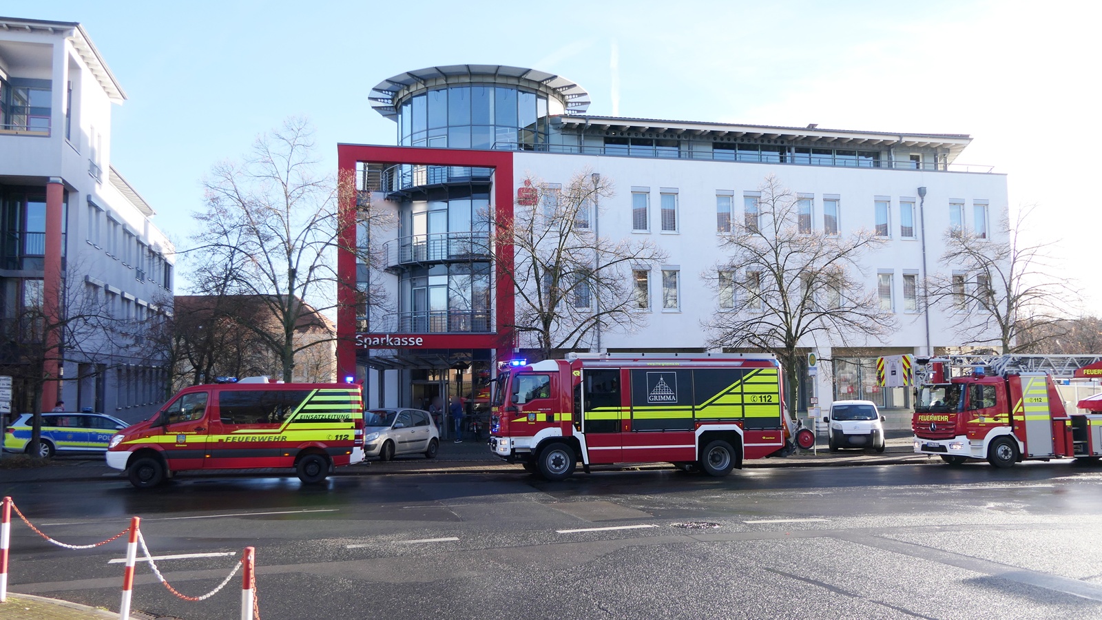 Die Brandmeldeanlage im Gebäude der Sparkasse hatte ausgelöst, sodass die Freiwilligen Feuerwehren aus Grimma und Hohnstädt zum Einsatz kamen.