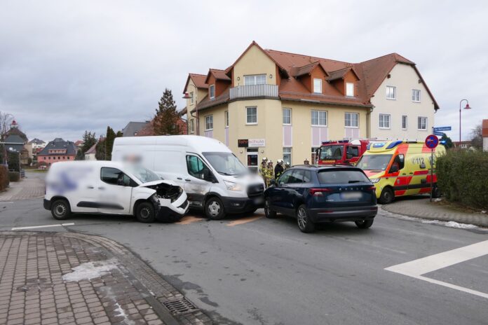 Grimma. Gegen 11:10 Uhr kam es am Freitag im Kreuzungsbereich Vorwerkstraße/Am Wolfsgraben in Grimma-West zu einem Verkehrsunfall, an dem drei Fahrzeuge beteiligt waren.