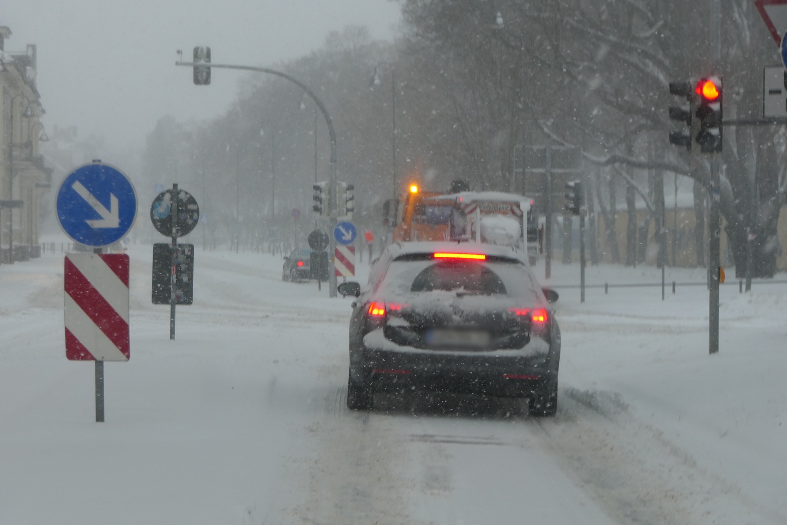 Der Winterdienst war den gesamten Tag über im Dauereinsatz, um die wichtigsten Verkehrsachsen befahrbar zu halten. Dennoch kam es vor allem an Steigungen zu Problemen. Mehrere Lastkraftwagen blieben an steilen Streckenabschnitten liegen und blockierten zeitweise den Verkehr. Betroffen waren unter anderem die Bundesstraße 107 in Grimma sowie die Leipziger Straße.