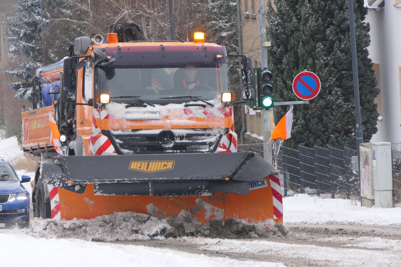 Grimma. Kräftige Schneefälle haben am Freitagmorgen in Grimma und Umgebung für erhebliche Verkehrsprobleme gesorgt.