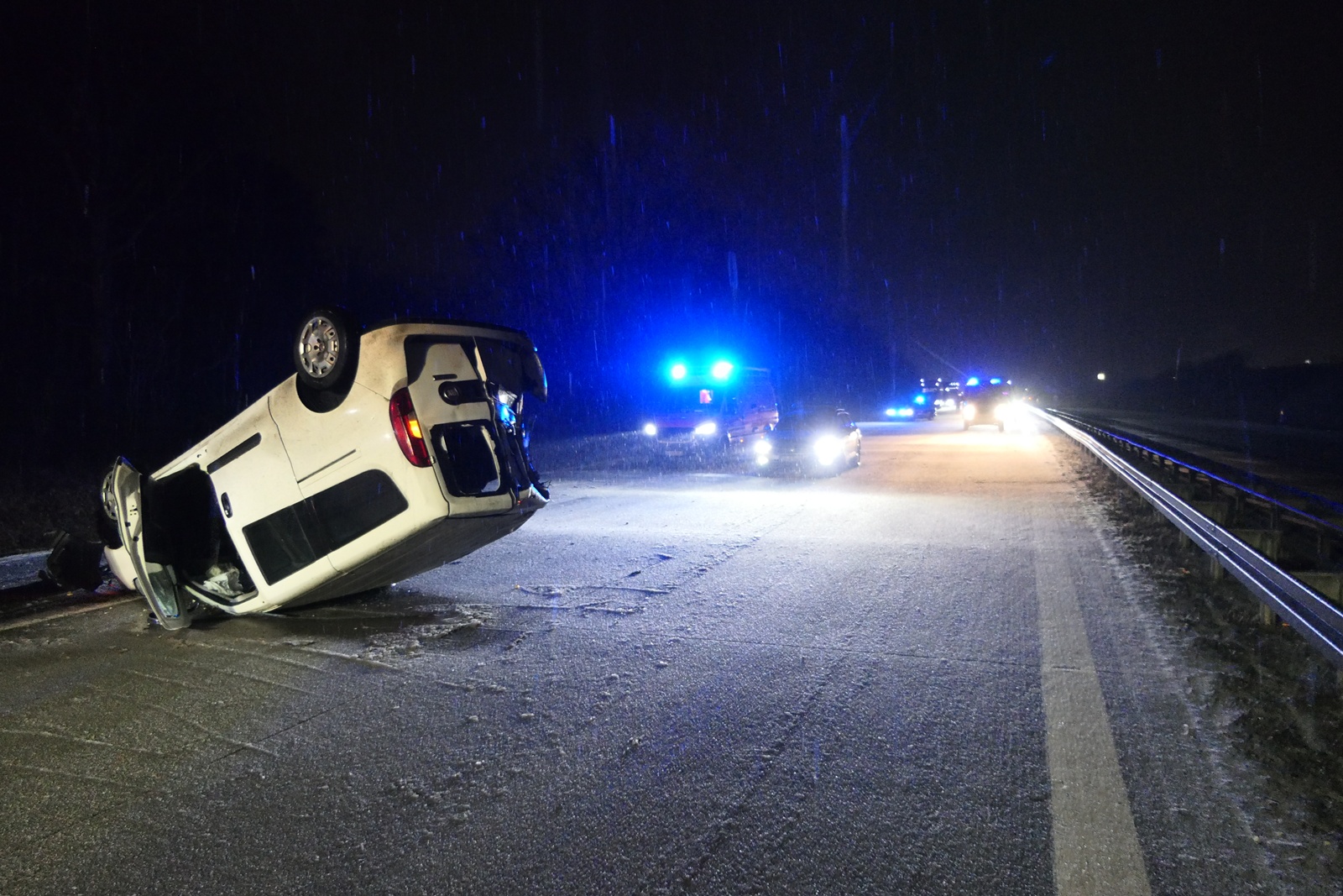 Zur genauen Unfallursache lagen zunächst keine gesicherten Erkenntnisse vor. Nach ersten Einschätzungen könnte jedoch gefrierender Regen und die damit verbundene Straßenglätte ursächlich gewesen sein.