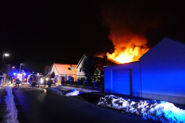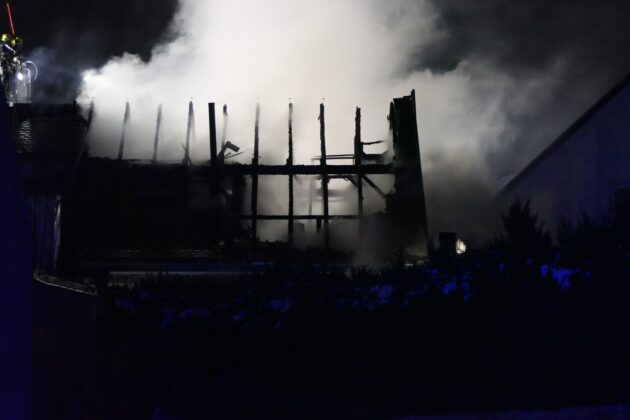 Das Feuer brach in einem Dreiseitenhof in der Windmühlenstraße aus. Beim Eintreffen der ersten Einsatzkräfte war der Brand bereits so weit fortgeschritten, dass die Löscharbeiten ausschließlich von außen durchgeführt werden konnten. Feuerwehren aus den umliegenden Gemeinden waren im Einsatz und konnten ein Übergreifen der Flammen auf weitere Gebäude des Dreiseitenhofes sowie eine weitere Ausbreitung innerhalb des betroffenen Hauses verhindern. Der betroffene Gebäudeteil brannte dennoch bis auf die Grundmauern nieder.