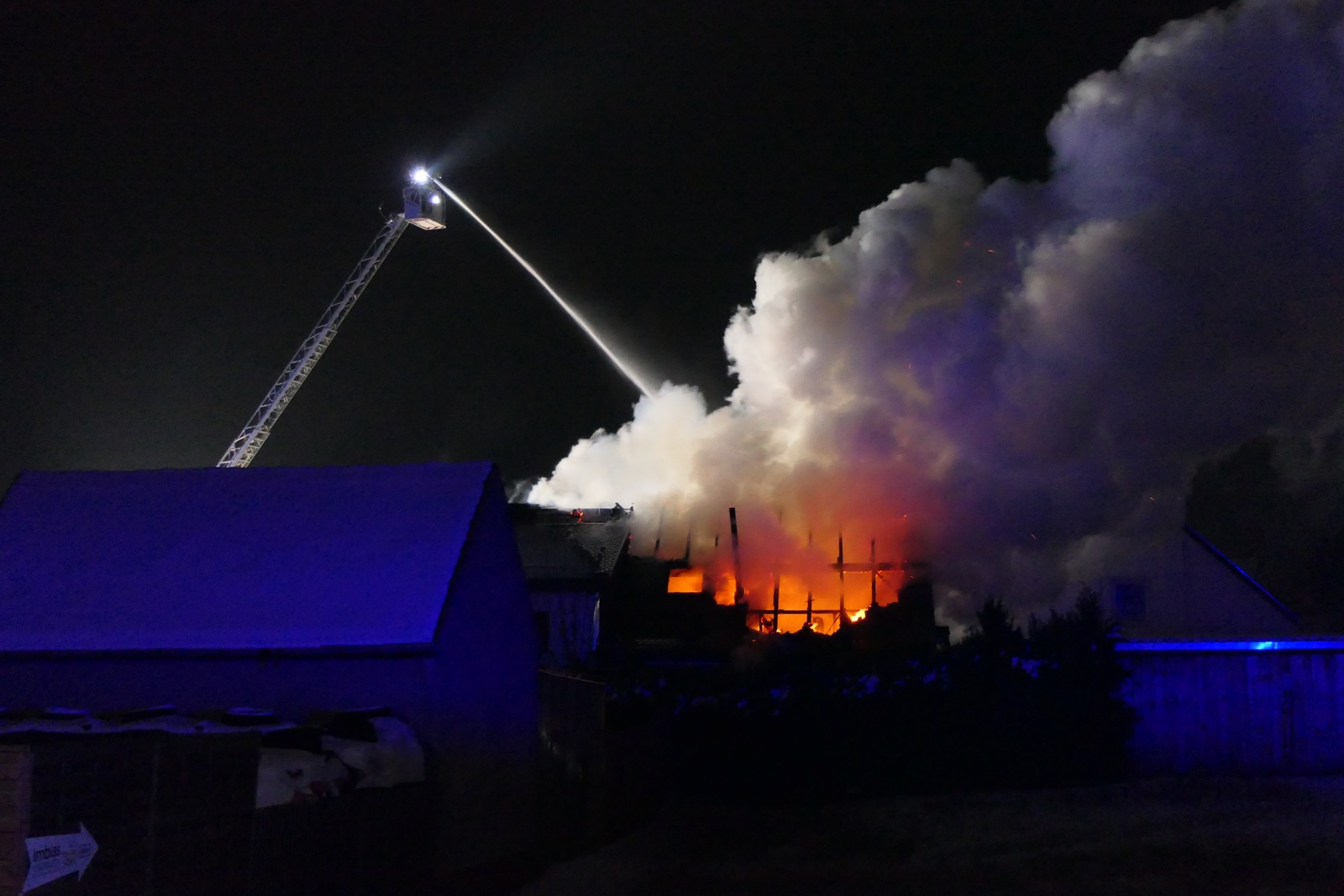 Die Löschwasserversorgung gestaltete sich aufgrund der örtlichen Gegebenheiten schwierig und musste durch den Einsatz mehrerer Tanklöschfahrzeuge sichergestellt werden. Unterstützt wurde die Einsatzleitung durch den stellvertretenden Kreisbrandmeister Thilo Bergt sowie durch Einsatzkräfte des technischen Dienstes des Landkreises.