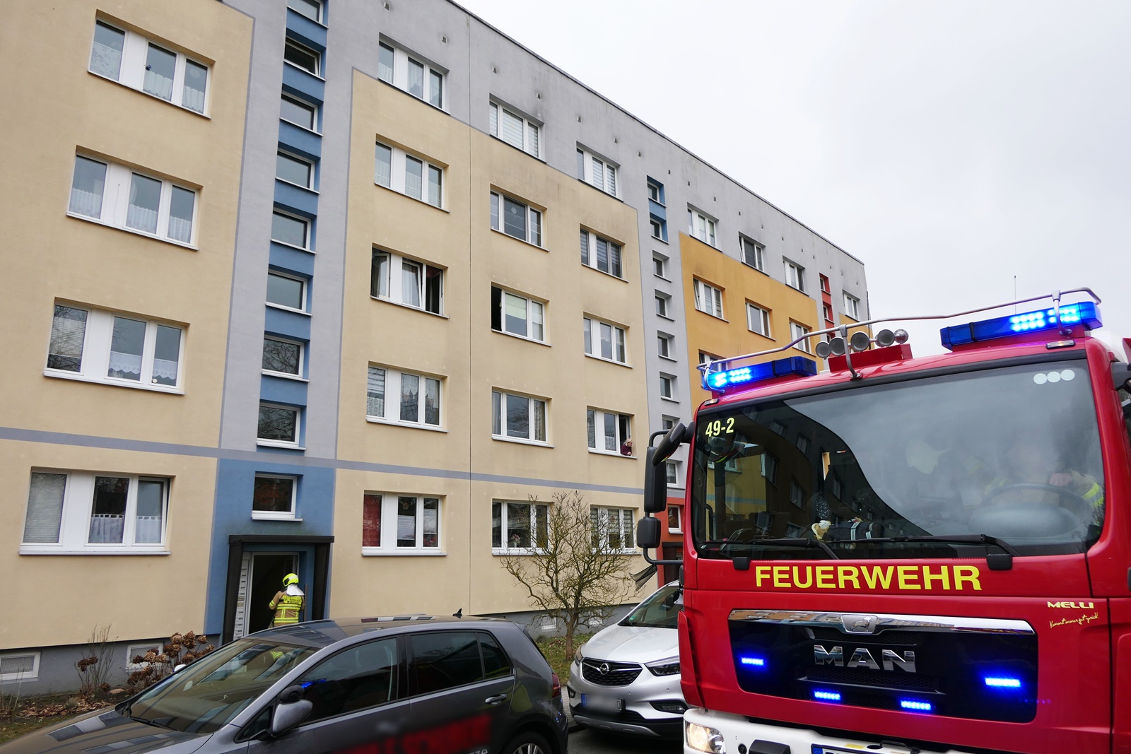 Einsatzort war ein Mehrfamilienhaus im Westring in Grimma. Auslöser des Einsatzes war ein ausgelöster Rauchmelder in einer Wohnung. Nachbarn verständigten daraufhin umgehend die Feuerwehr. Die zuerst eintreffenden Polizeibeamten verschafften sich schnell Zugang zur betroffenen Wohnung und trafen dort eine ältere Frau an.