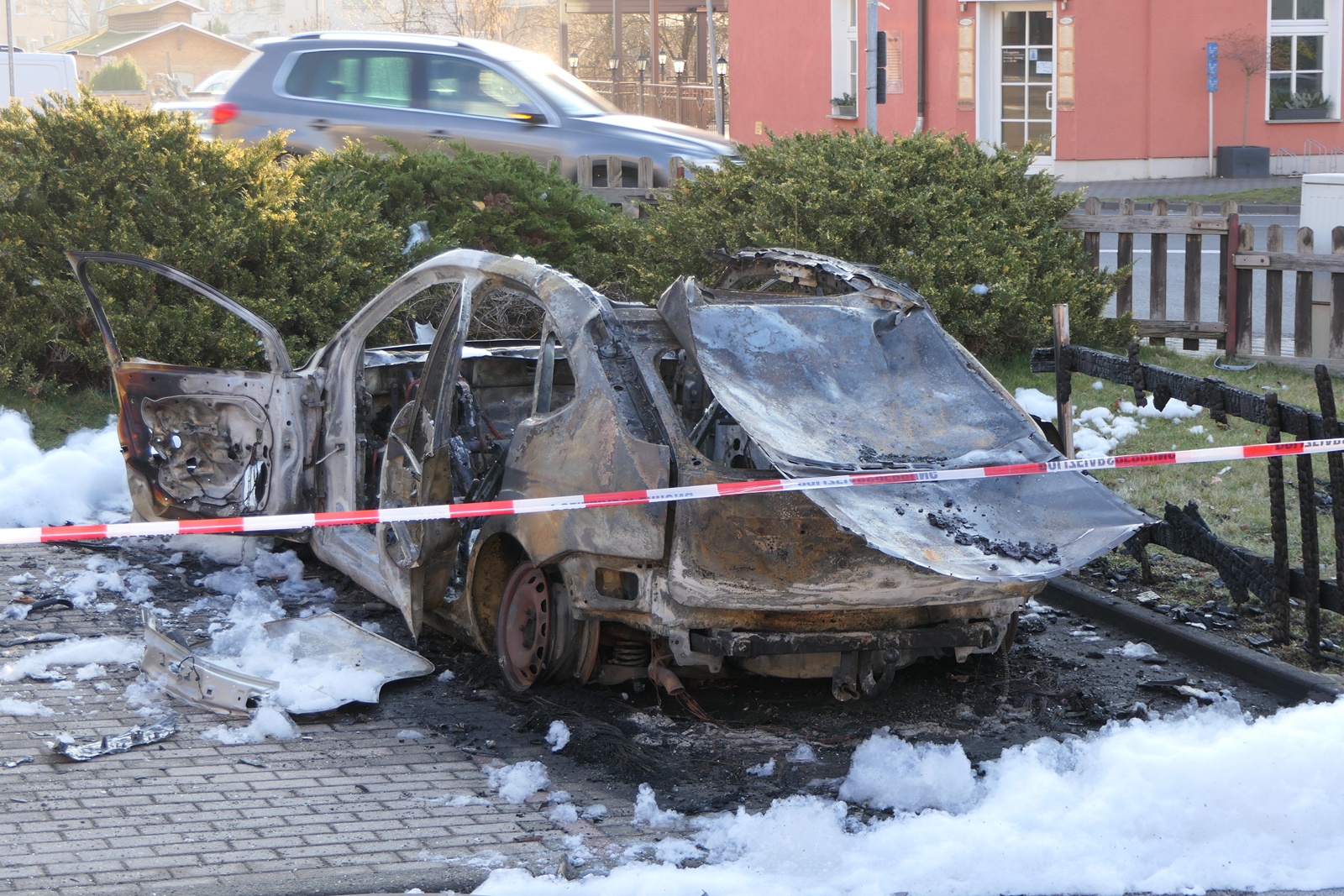 Auto in Grimma gesprengt: Fahrzeug brennt vollständig aus