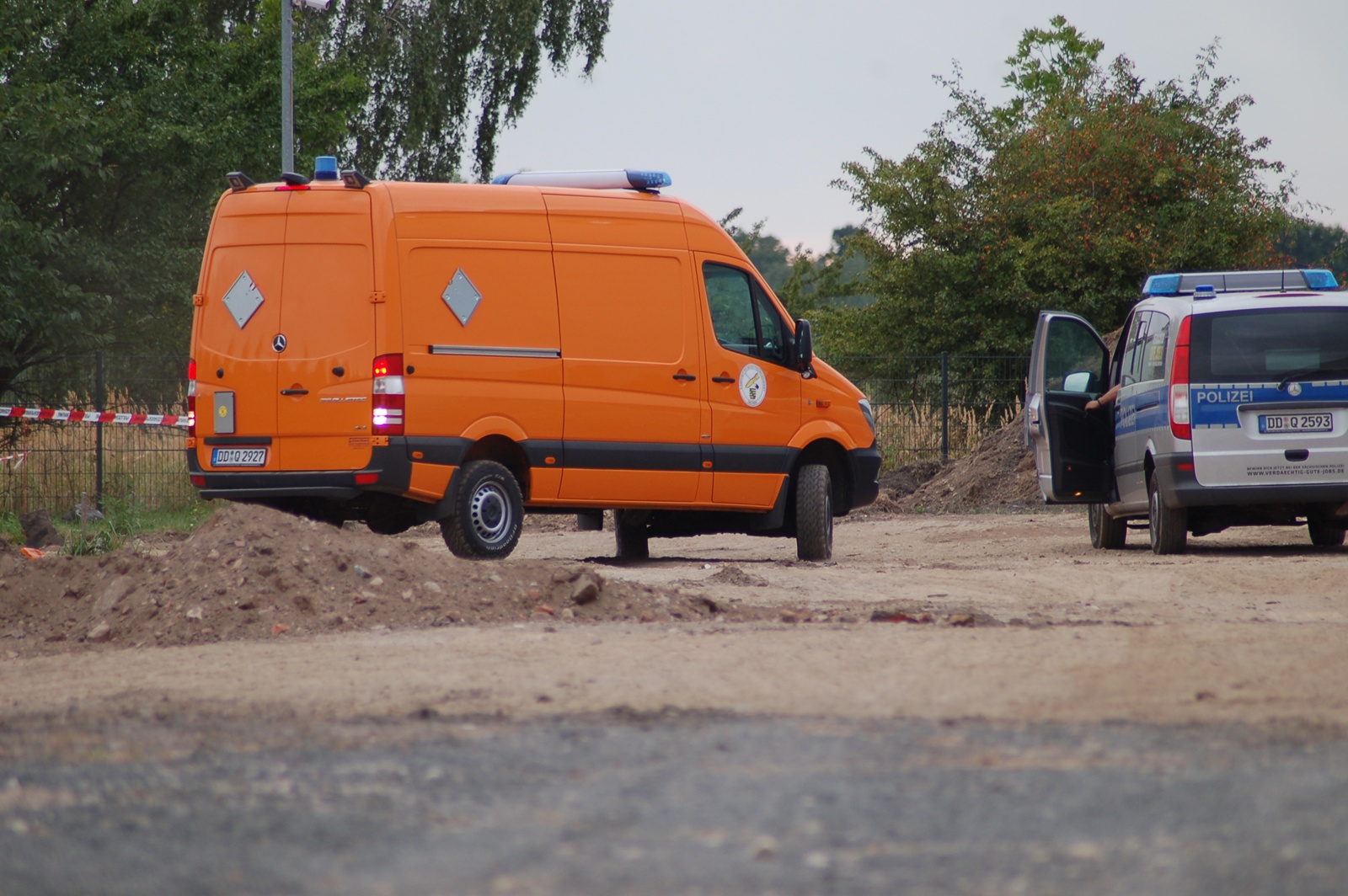 Der Mitarbeiter meldete laut Polizeiangaben den Fund einer scheinbaren Mine aus dem Zweiten Weltkrieg, die er mit einem Metalldetektor auf einem Feld entdeckte. Daraufhin wurde der Bereich von der Polizei abgesperrt.