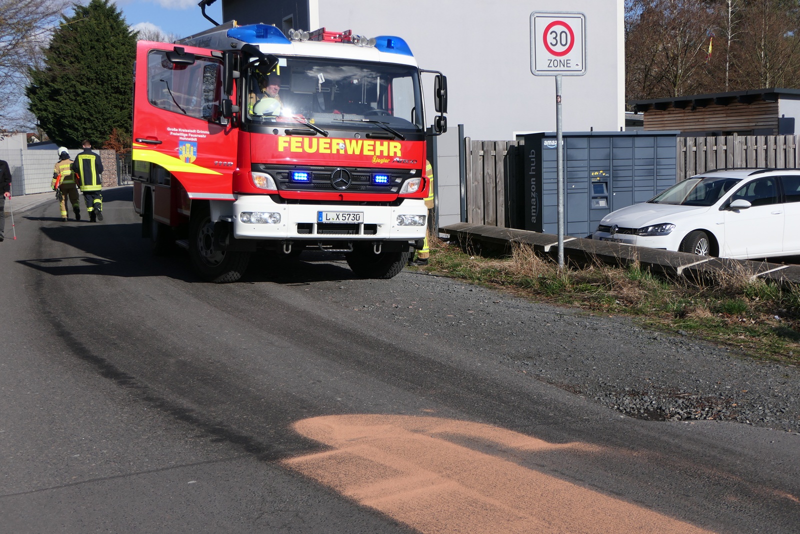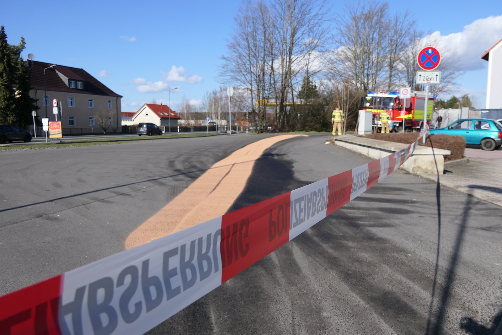 Die Einsatzkräfte der Feuerwehr sicherten die Gefahrenstelle und brachten Bindemittel aus, um den Kraftstoff aufzunehmen und eine weitere Ausbreitung zu verhindern. Während der Reinigungsarbeiten musste die Wasserturmstraße vorübergehend gesperrt werden. Für die vollständige Reinigung der Fahrbahn wird nun eine spezialisierte Fachfirma hinzugezogen.