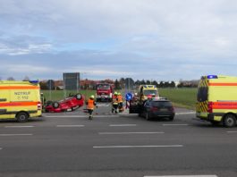 Kreuzungscrash in Brandis: Ford überschlägt sich – Drei Verletzte