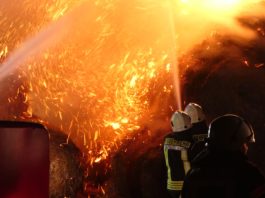 Strohballen in Pomßen in Flammen