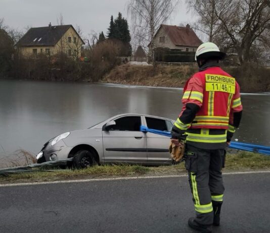 Auto rutscht in Teich – Feuerwehr rettet zwei Insassen unverletzt