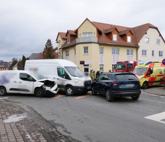 Verkehrsunfall in Grimma-West: Drei Fahrzeuge kollidieren im Kreuzungsbereich