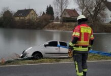 Auto rutscht in Teich – Feuerwehr rettet zwei Insassen unverletzt